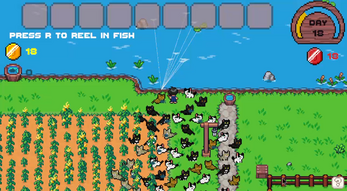 Your mum has left you to fish for the village while she goes away for a few days to visit family, but the local cats catch wind of your fishing and come to steal your fish!