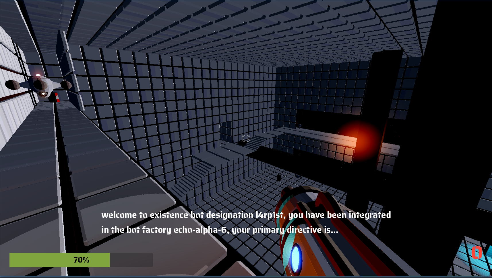 An first person shooter inspired by Doom, you play a robot hacked to fight against and destroy the factory you were constructed in.